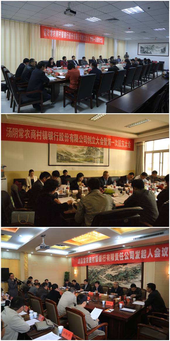 近日,我行村镇银行批量化组建工作取得了新进展。宜阳村镇银行、汤阴村镇银行相继召开创立大会,监事长吴伟民、董事会秘书徐惠春、监事会办公室主任周勇军出席了会议,会议通过了村镇银行筹建工作报告、村镇银行章程以及主要公司治理制度,并选举出了第一届董、监事会成员。同时,嵩县村镇银行发起人会议也顺利召开,全体出资人通过了发起设立嵩县村镇银行的议案,并成立了筹建工作小组。